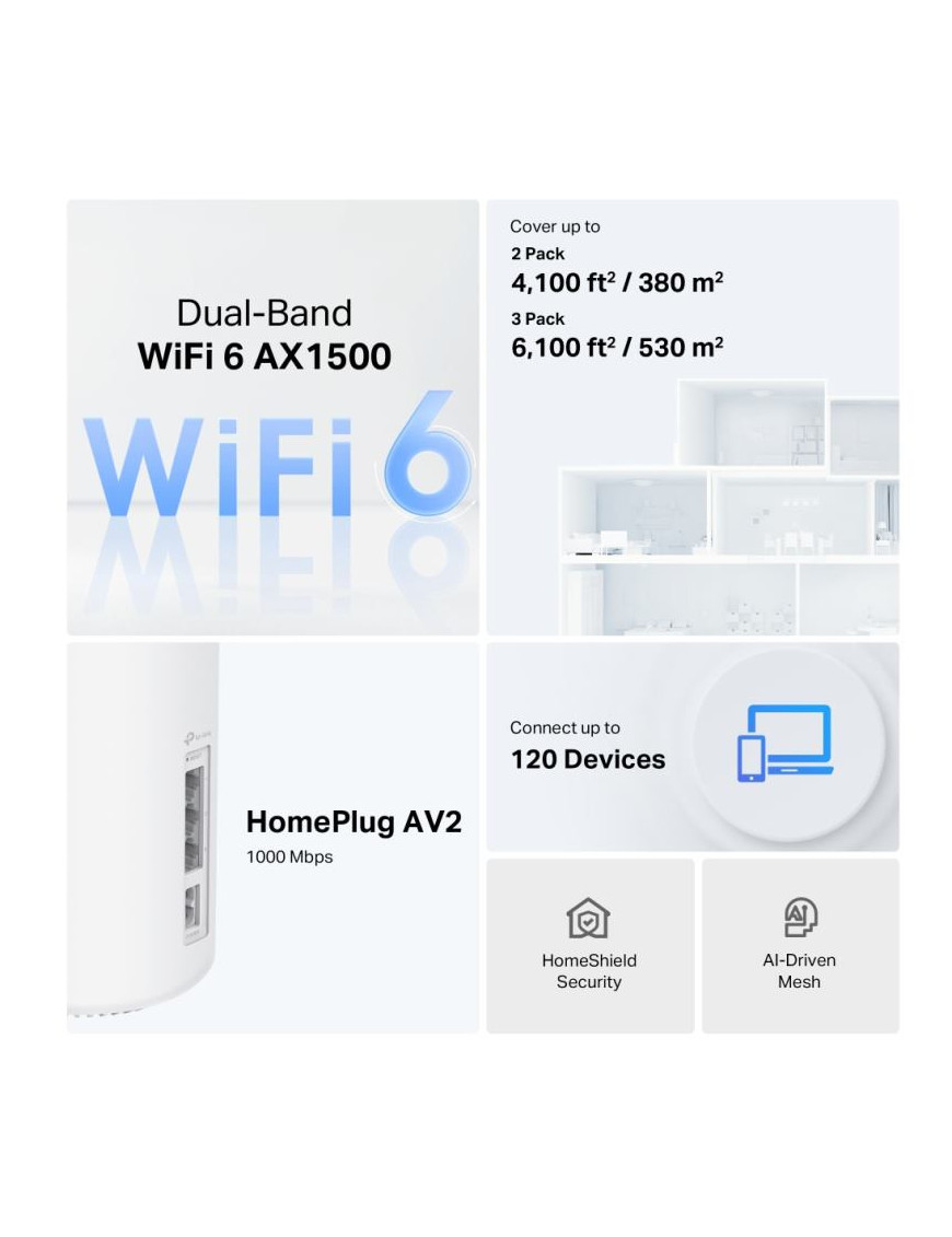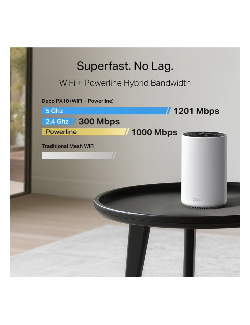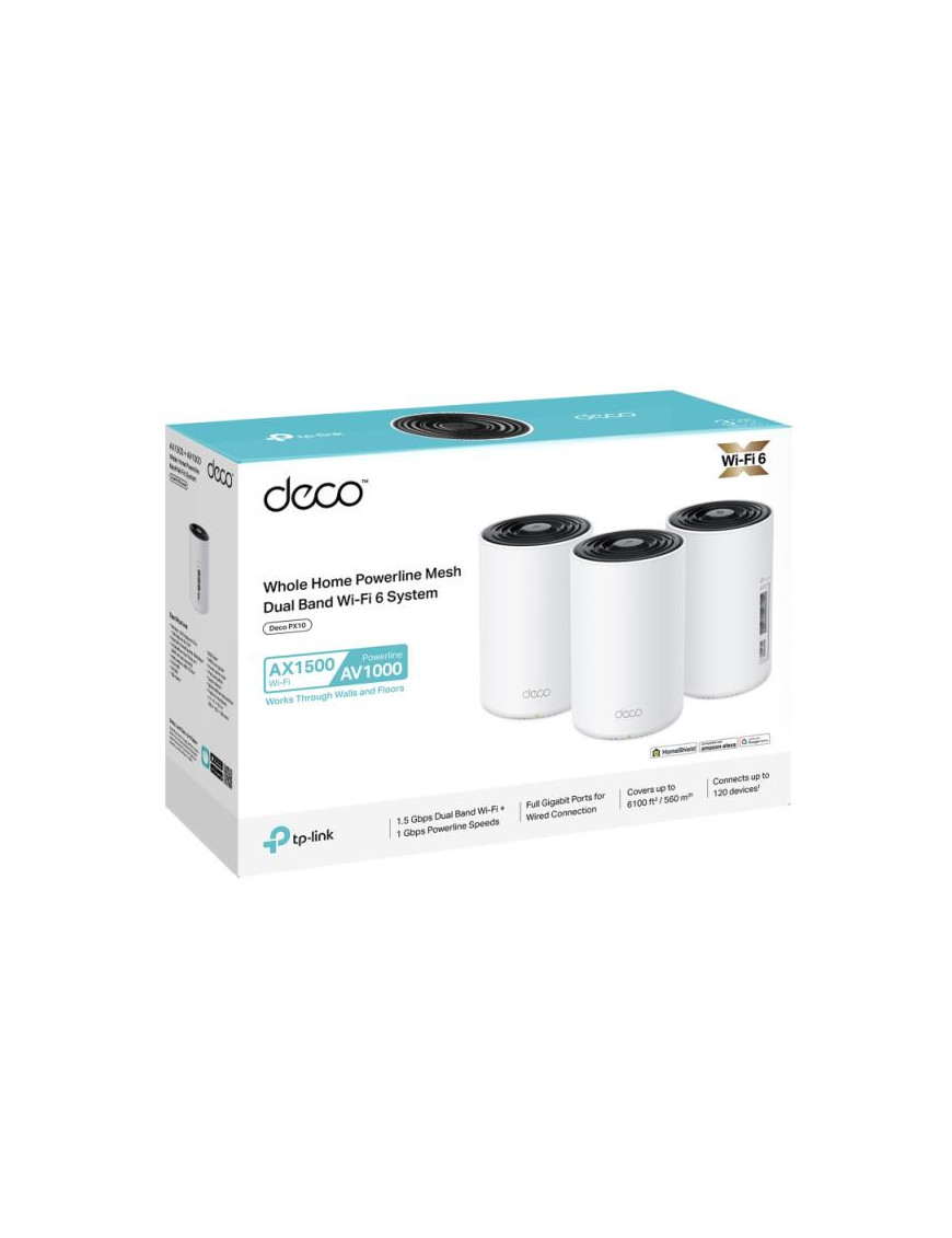 Deco PX10 je revolučný hybridný Mesh Wi-Fi 6 systém, ktorý kombinuje Wi-Fi 6 (AX1500) s technológiou Powerline (AV1000) pre dokonalé pokrytie bez mŕtvych zón. Signál ľahko preniká cez steny a podlahy. Inteligentná sieť s AI optimalizuje pripojenie, zatiaľ čo bezproblémový roaming zaisťuje plynulý prechod medzi jednotkami. Každá jednotka má 3 gigabitové porty a pokročilé zabezpečenie HomeShield chráni celú sieť aj IoT zariadenia. Ideálne pre náročné domácnosti, hranie hier a 4K streaming.