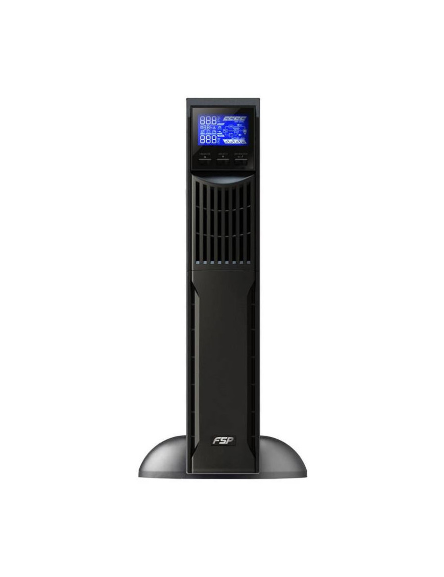 FSP Eufo: Výkonný line-interaktívny UPS s kapacitou 3000 VA / 2700 W (PF 0.9) a čistým sínusovým výstupom. Flexibilný dizajn Rack/Tower (2U) s otočným LCD. Ponúka 8x IEC C13 výstupov a AVR stabilizáciu napätia (162-290V). Interná batéria (6x 9Ah) poskytuje 4 min zálohy pri 100% záťaži, s možnosťou rozšírenia externou batériou (až 20.5 min). Komunikácia cez USB/RS-232, voliteľne SNMP. ECO režim s 98% účinnosťou, hot-swap batérie a funkcia EPO pre kritické aplikácie. Nízka hlučnosť <45 dB.