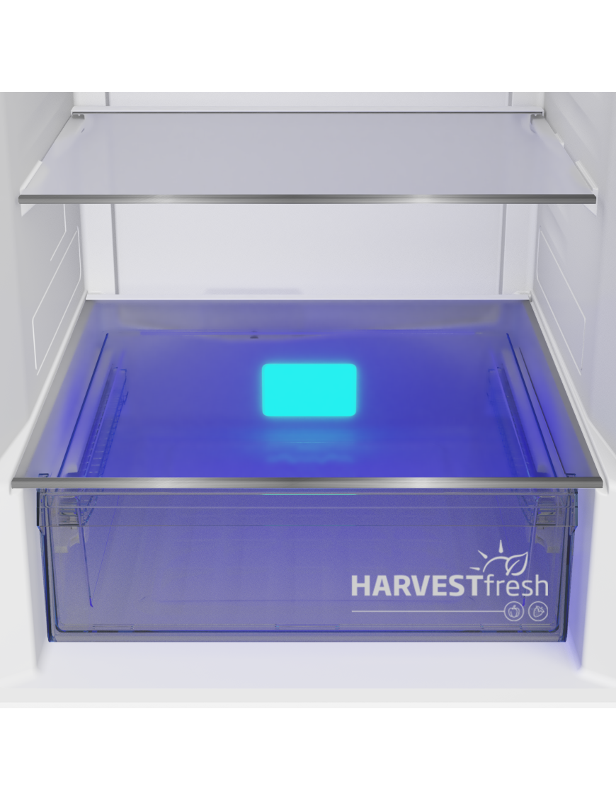 Svetelný režim priehradky HarvestFresh™ kopíruje striedanie slnečného svetla a tmy počas celého dňa. To udržuje prirodzené procesy v ovocí a zelenine, takže sa uchová viac vitamínov aj chuti, ako keby boli zatvorené len v tme. Uskladnené ovocie a zelenina sa neskazia tak rýchlo, ich čerstvosť vydrží dlhšie a to uľahčí časté nakupovanie.