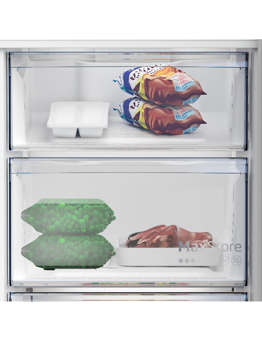 Oddelený systém chladenia NeoFrost™ sa postará o chladenie bez námrazy a uchovanie potravín bez miešania pachov medzi chladničkou a mrazničkou. V kombinácii so šetrnou cirkuláciou vzduchu AeroFlow™, ktorá zaistí rovnomerné rozloženie teploty vzduchu v celom priestore chladničky, udrží potraviny dlhšie čerstvé, bez vyschnutia a uchová dlhšie ich chuť a živiny. Navyše sa v chladničke netvoria nepríjemné kvapky na zadnej stene, v mrazničke sa netvorí námraza, takže nie je potrebné nič odmrazovať.