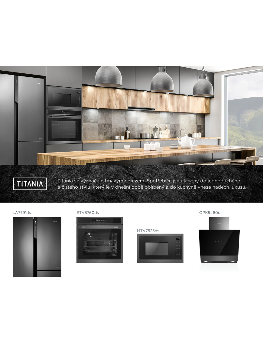 Designová línia Titania, zaujala natoľko, že si vyslúžila ocenenie od spoločnosti Czechdesign. Táto organizácia, venujúca sa už niekoľko rokov popularizácii českého designu, vyzdvihla moderný vzhľad a funkčný design jednotlivých produktov. Líniu Titania odporučila ako dizajnovo zladenú a vhodnú na docielenie harmonickej kuchyne. Pre nás je to impulz, že ideme správnym smerom. Teší nás, že môžeme k našim spotrebičom pridať štítok Czechdesign odporúča.