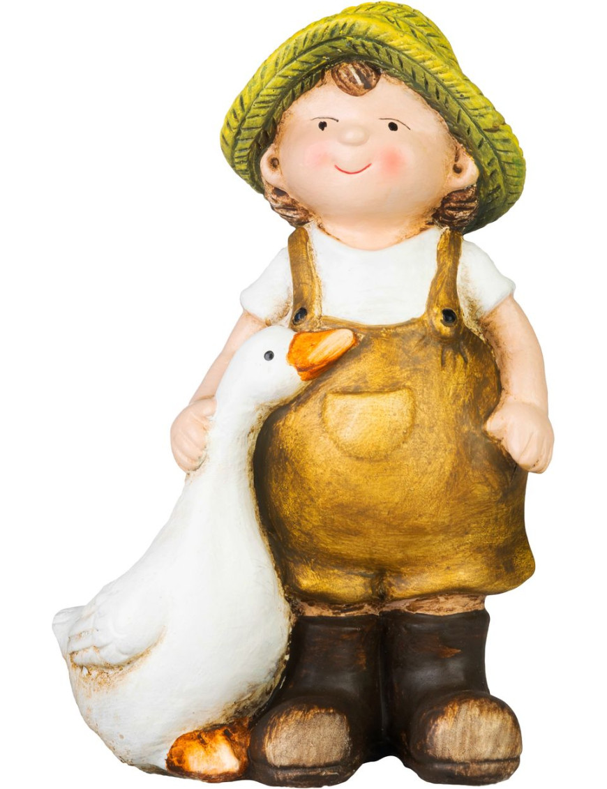 Dekorácia MagicHome, Chlapček s húskou v hnedom oblečení, keramika, 6,5x12,5x19 cm