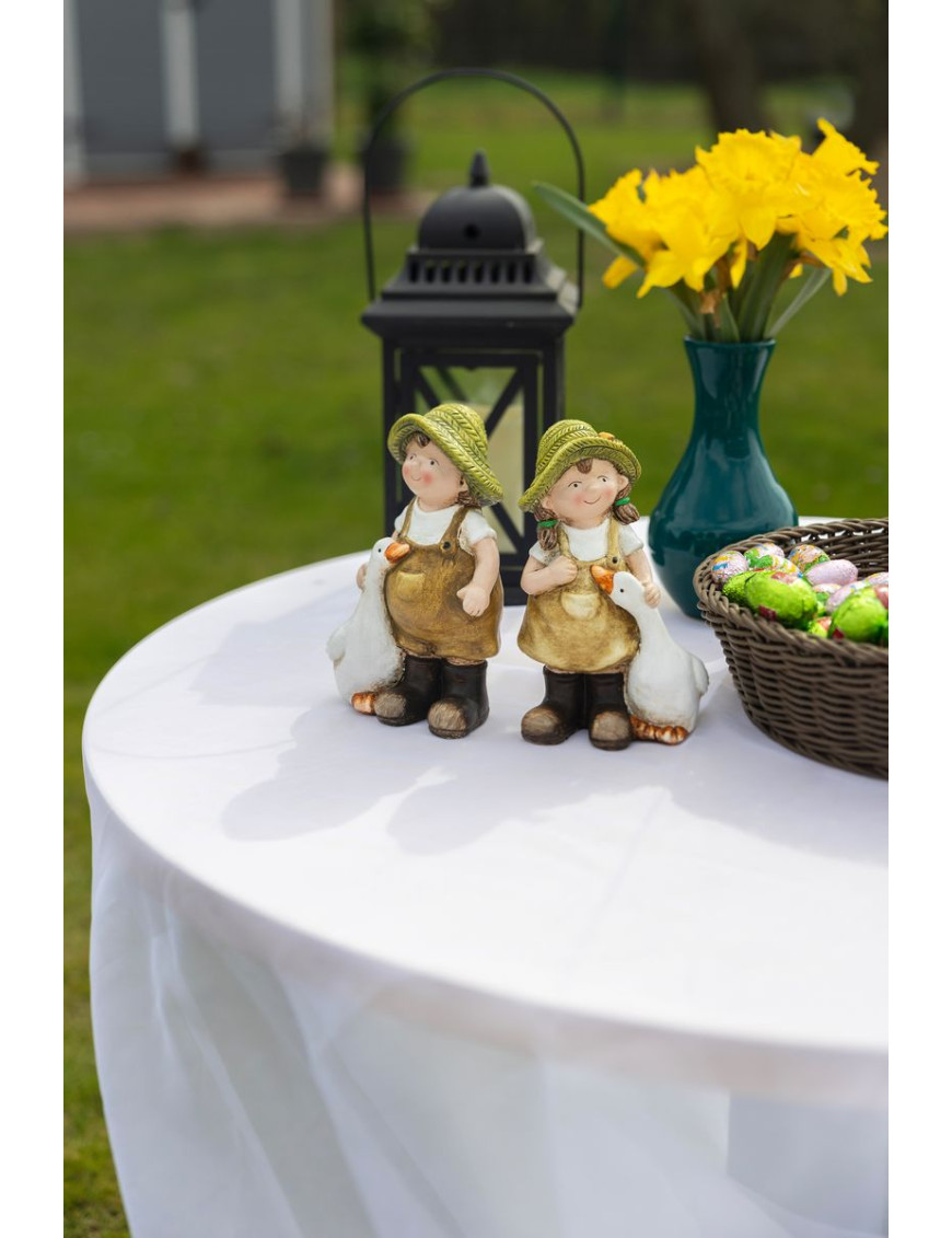 Táto roztomilá keramická dekorácia MagicHome zobrazuje chlapčeka s huskou v hnedastom oblečení, čím vnáša do interiéru útulnú a vidiecku atmosféru. S rozmermi 6,5 × 12,5 × 19 cm je ideálna na umiestnenie na poličku, komodu alebo parapet. Precízne spracovanie a jemné detaily dodávajú postavičke realistický vzhľad a pôsobia príjemným dojmom. Skvele sa hodí ako doplnok do rustikálneho alebo klasického interiéru, prípadne ako darček pre milovníkov originálnych dekorácií.