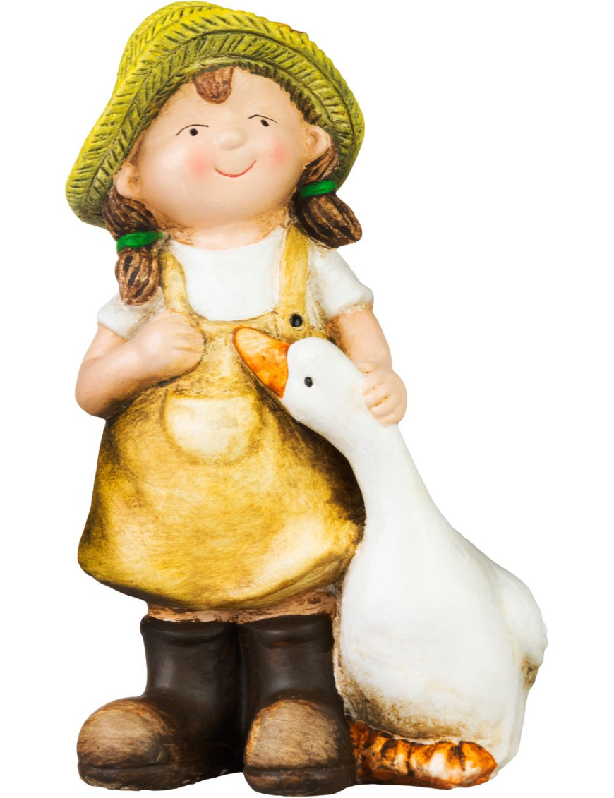 Dekorácia MagicHome, Dievčatko s húskou v hnedom oblečení, keramika, 6,5x12,5x19 cm