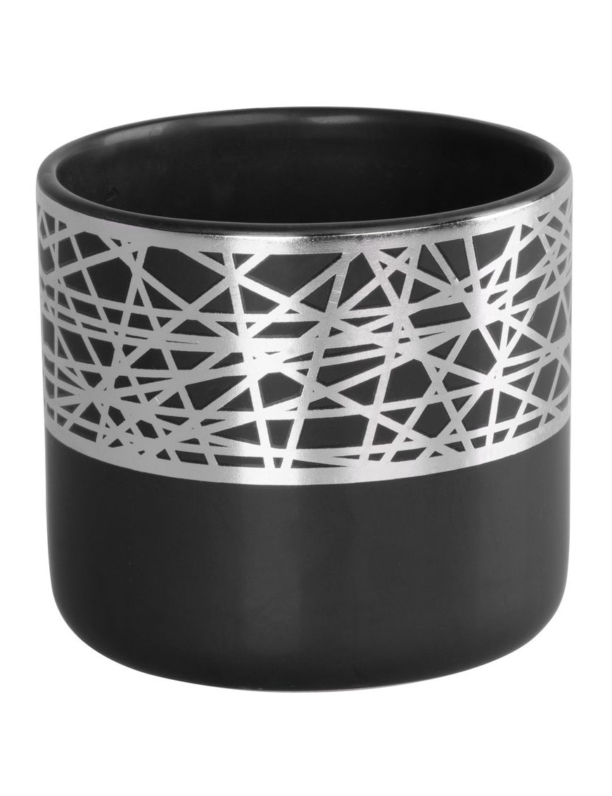 Dekorácia MagicHome, Kvetináč so strieborným ornamentom, čierny, dolomit, 16,8x16,8x14,7 cm
