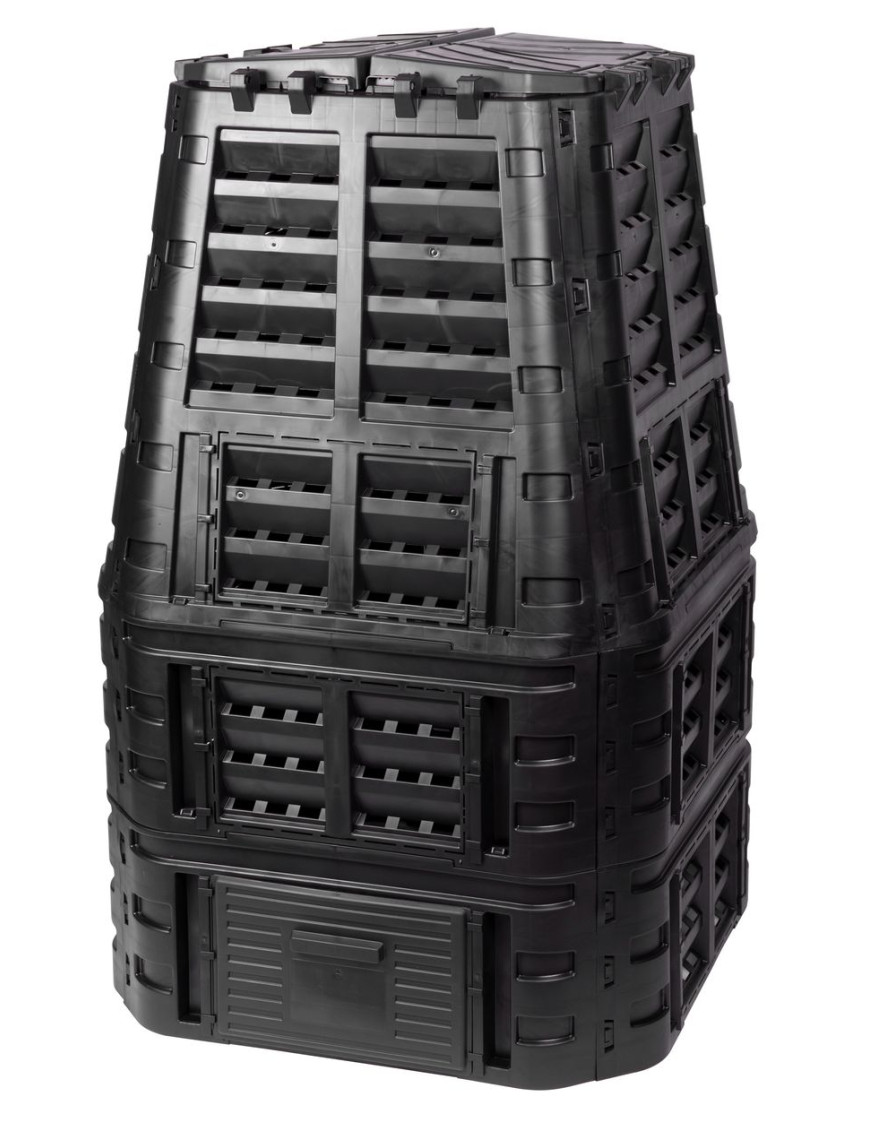 - Špeciálny tvar zaisťuje rovnomernú cirkuláciu vzduchu, umožňuje zavlažovanie kompostu a urýchľuje proces rozkladu.