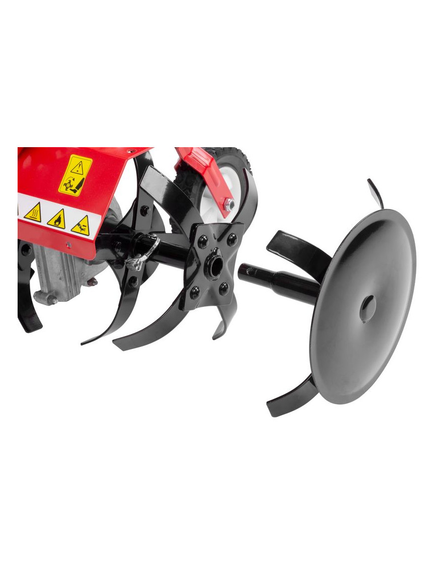 pred sadením, ničenie burín a iné spôsoby obrábania pôdy. Rotavátor disponuje 4- taktným, 1- valcovým, vzduchom chladeným motorom.. Pracuje rýchlosťou až 3000 otáčok/ min. Vybavený je 6 nožmi, ktoré sú vyrobené z ocele. Pracovný záber predstavuje 590 mm a pracovná hĺbka dosahuje 130 – 260 mm.