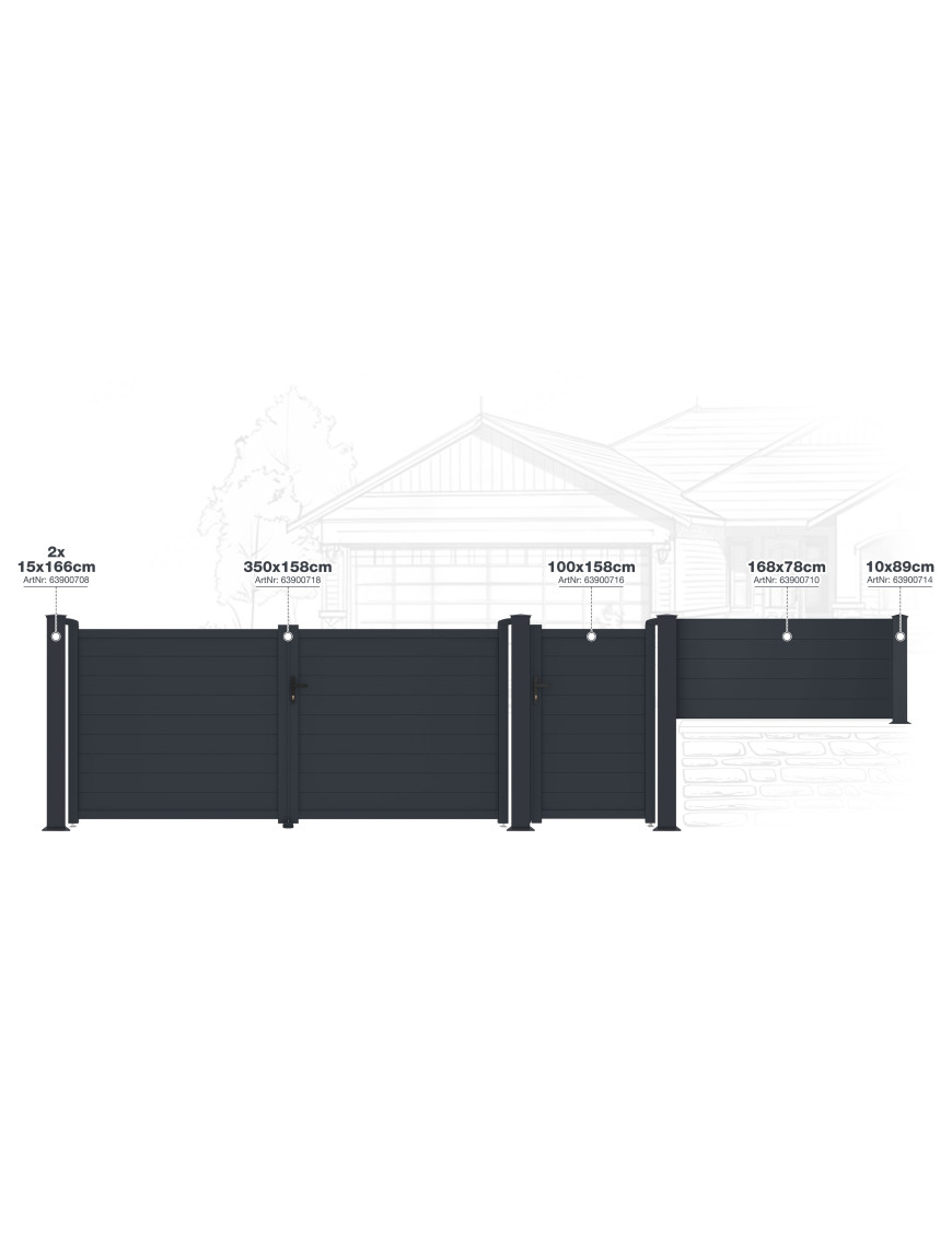 Prispôsobiť si takto na mieru môžete všetky diely plotových systémov G21 Orlando alebo Marion, či už ide o bránky, brány alebo plotové polia.
