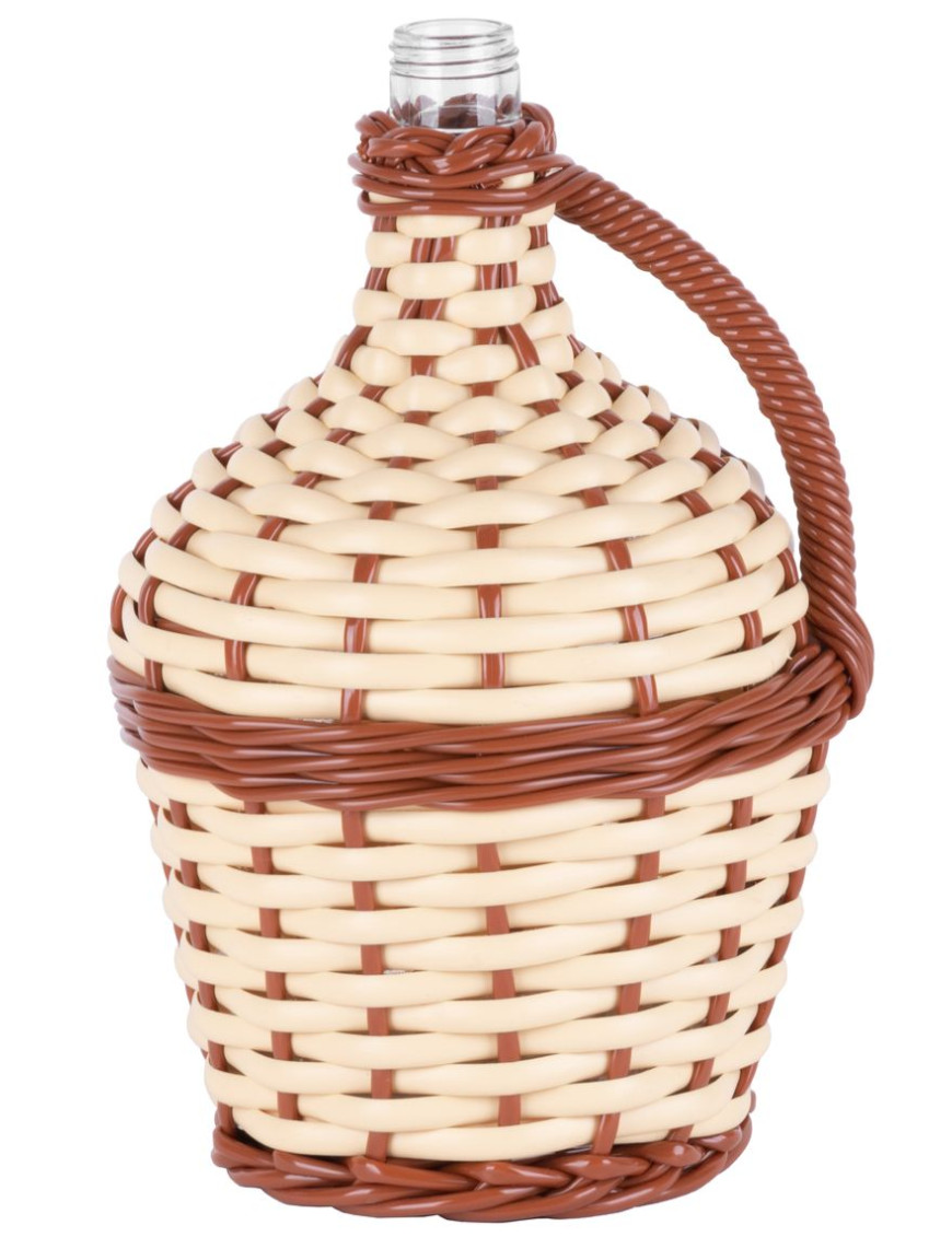 Demižón Strend Pro Cada Wilo, 2 lit. sklenený, na víno a pálenku, opletený, MIX farieb
