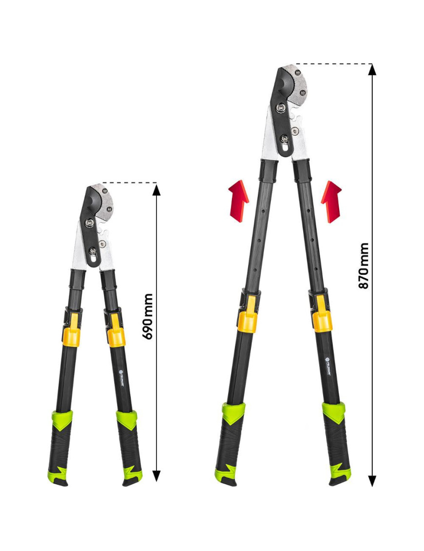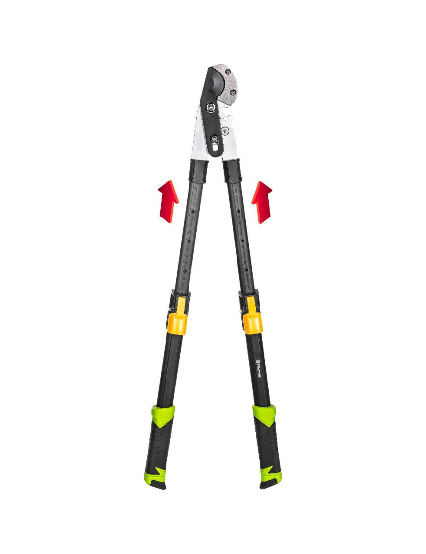 Teleskopické pákové nožnice Fieldmann FZNR 1014 s hmotnosťou 1 500 g sú profesionálnym nástrojom, ktorý vám výrazne uľahčí starostlivosť o záhradu. Dĺžku nožníc si môžete vybrať od 73,5 cm do 85 cm. Vďaka tomu môžete pracovať aj na ťažko prístupných miestach bez toho, aby ste museli použiť rebrík.