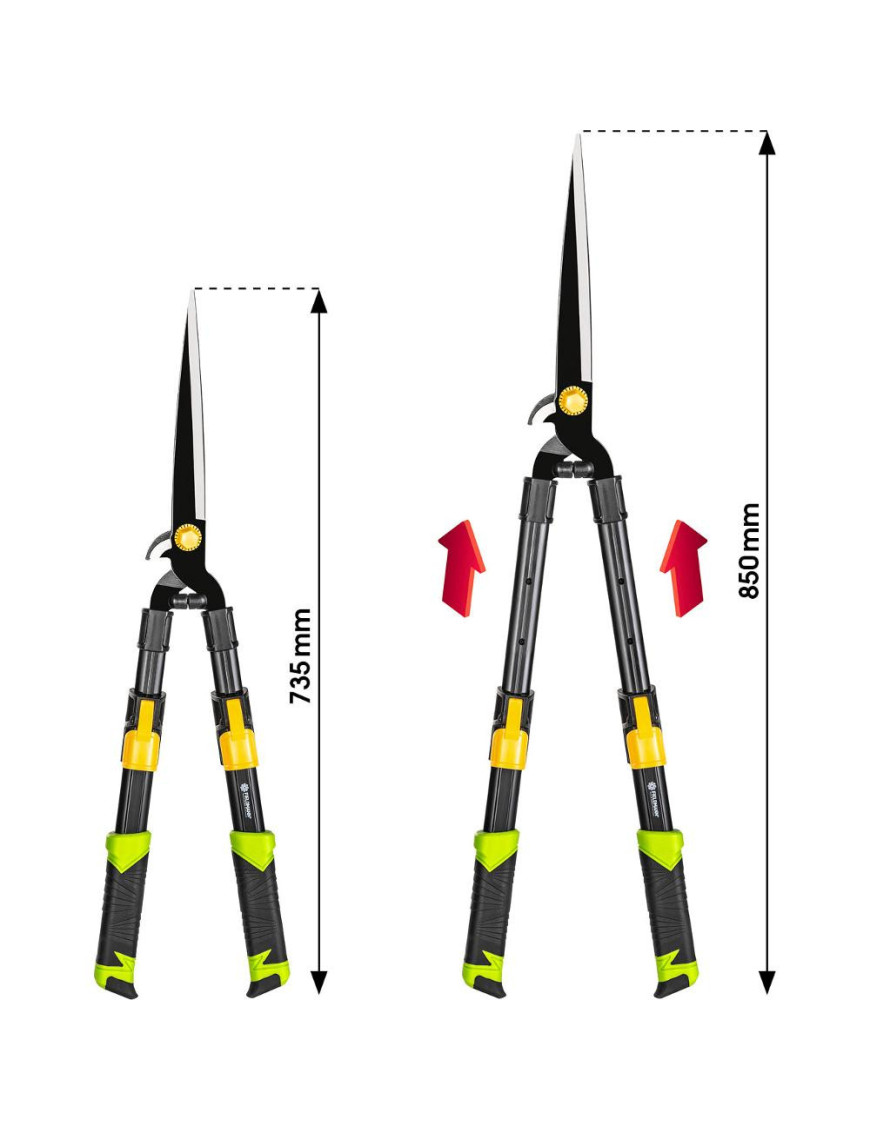Teleskopické pákové nožnice Fieldmann FZNR 1030 s hmotnosťou 1 280 g sú pripravené kedykoľvek vám pomôcť efektívne zastrihnúť rastliny a kríky vo vašej záhrade. Dĺžku nožníc si môžete zvoliť od 73,5 cm do 85 cm. Takto môžete pracovať aj na ťažko prístupných miestach bez toho, aby ste museli použiť rebrík.