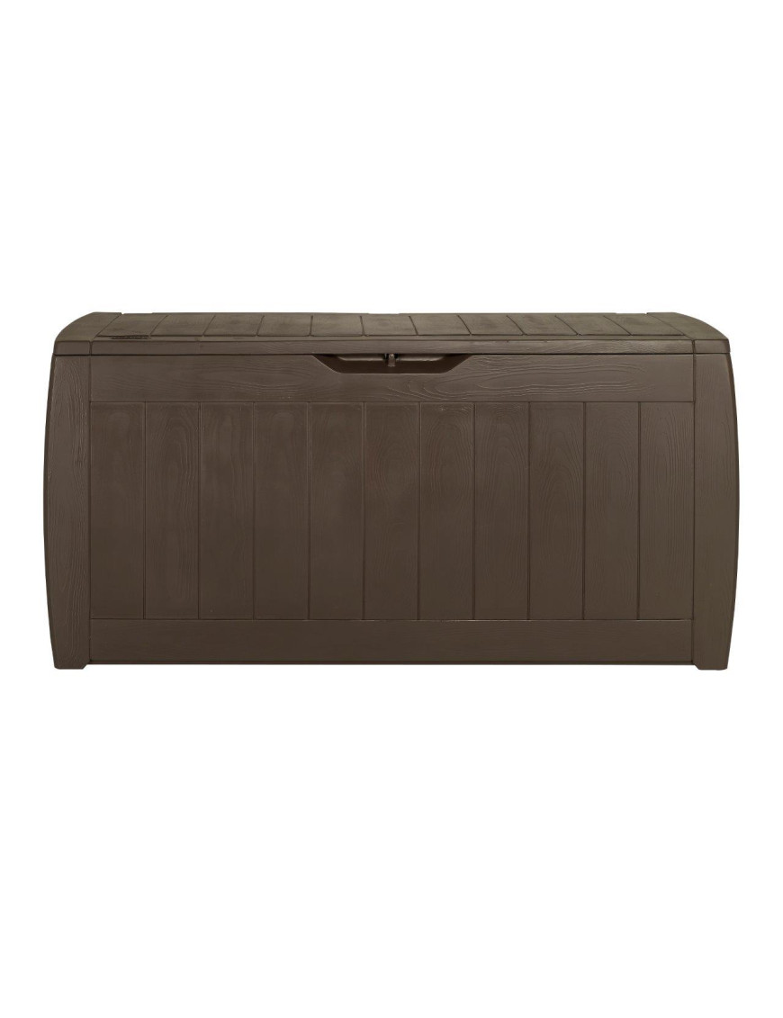 Hnedý rozmerný nízkoúdržbový úložný box v dizajne dreva poskytuje suché vetrané prostredie pre skladované veci. Môžete zvoliť z dvoch farieb pre doladenie looku exteriéru / interiéru. Vodeodolnosť, nízka hmotnosť, ľahká údržba, farby na slnku neblednú.