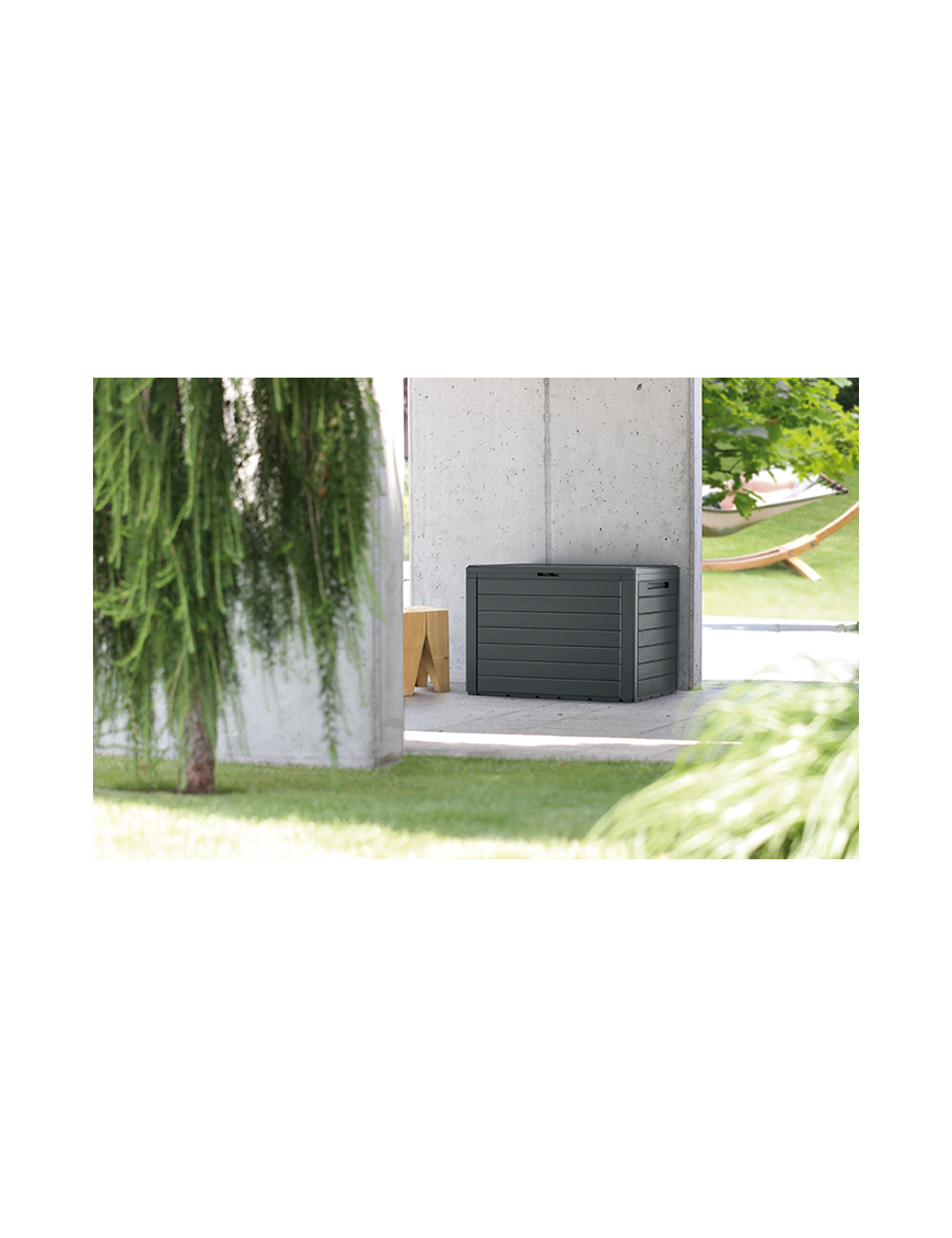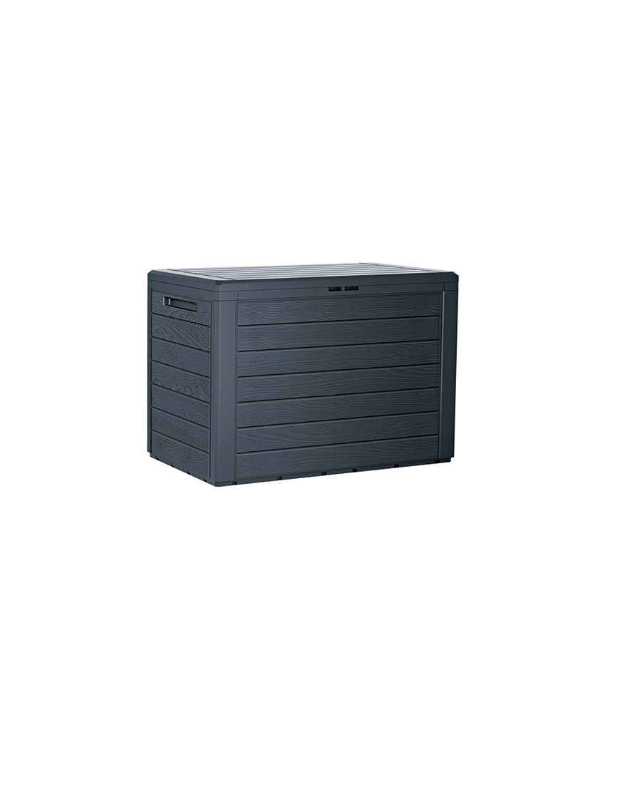 Záhradný box Woodebox značky Prosperplast predstavuje praktického pomocníka do vonkajších priestorov. Vďaka svojmu drevenému dizajnu bude ozdobou vašej záhrady, terasy alebo balkóna. Jeho antracitová farba pôsobí príjemne na pohľad. Uschovajte do boxu s odvetrávaním všetko potrebné od detských hračiek po deky a vankúše. Možno ho zabezpečiť aj visiacim zámkom a zamknúť cennejšie veci vo vnútri. Zostavenie boxu zvládne každý. Jednotlivé časti boxu sa zacvakajú do seba, takže vám jeho zostavenie nezaberie veľa času a nebudete potrebovať ani žiadne náradie. Na bočných stranách boxu sa nachádzajú madlá na jednoduché prenášanie. Veko boxu je odklápacie pomocou plastových pántov.