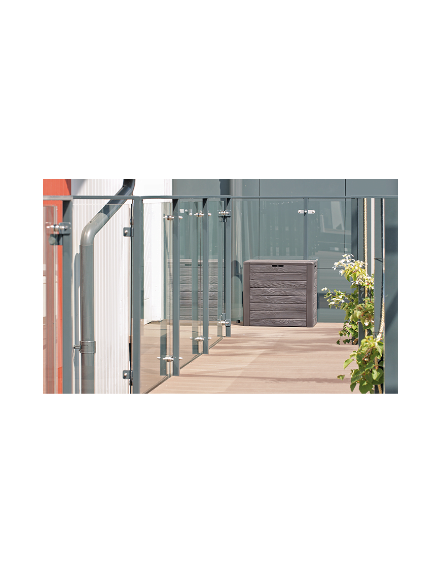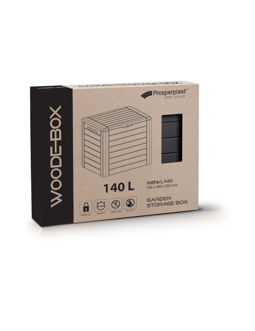 Záhradný box Woodebox značky Prosperplast predstavuje praktického pomocníka do vonkajších priestorov. Vďaka svojmu drevenému dizajnu bude ozdobou vašej záhrady, terasy alebo balkóna. Jeho hnedá farba pôsobí príjemne na pohľad. Uschovajte do boxu s odvetrávaním všetko potrebné od detských hračiek po deky a vankúše. Možno ho zabezpečiť aj visiacim zámkom a zamknúť cennejšie veci vo vnútri. Zostavenie boxu zvládne každý. Jednotlivé časti boxu sa zacvakajú do seba, takže vám jeho zostavenie nezaberie veľa času a nebudete potrebovať ani žiadne náradie. Na bočných stranách boxu sa nachádzajú madlá na jednoduché prenášanie. Veko boxu je odklápacie pomocou plastových pántov.