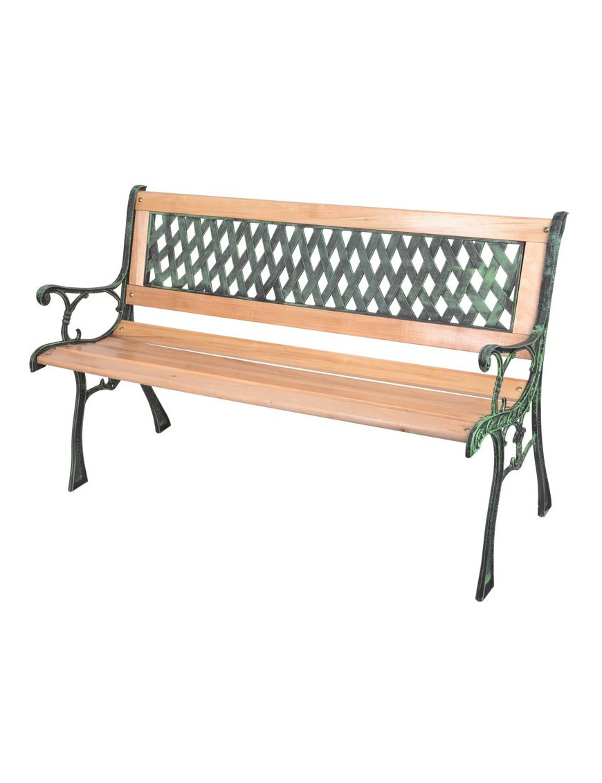 Záhradná lavička je pekným a praktickým doplnkom do každej záhrady. Lavička je vyrobená kombináciou dreva, plastu a kovu. Hlavná konštrukcia je pre poskytnutie dostatočnej pevnosti vyrobená z kovu. Zvyšné časti určené na opieranie a sedenie sú vyrobené z dreva a plastu. Kovové a plastové časti sú ladené do zaujímavej, tmavo-zelenej farby, ktorá v kombinácii s prírodným drevom vytvára skvelý dojem. Lavička má rozmery 120 x 55 x 75 cm a jej nosnosť je 150 kg.