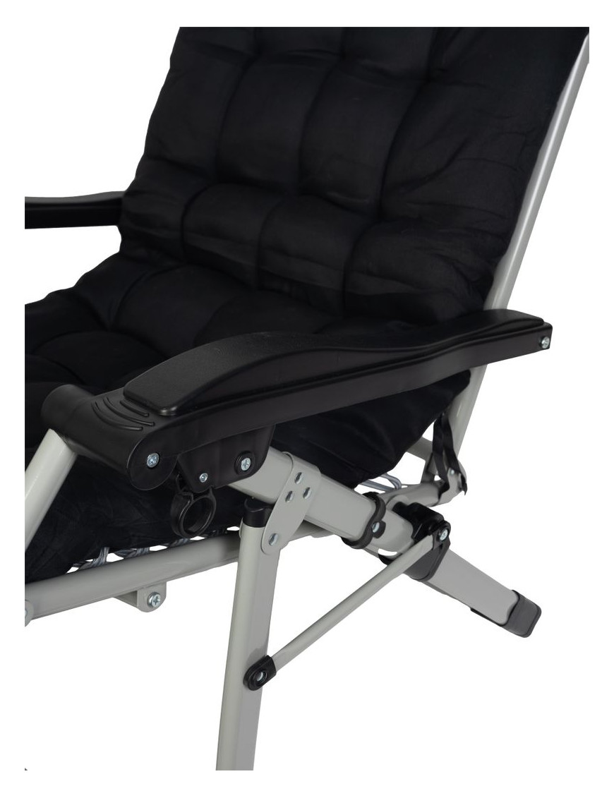 Záhradné lehátko POHO v čiernej farbe je pohodlné a praktické polohovateľné lehátko určené na relax v záhrade, na terase alebo pri bazéne. Pevná konštrukcia a možnosť nastavenia sklonu operadla zabezpečujú maximálny komfort pri odpočinku. Lehátko je vyrobené z odolných materiálov vhodných na vonkajšie použitie a ľahko sa udržiava. Moderný dizajn v čiernom prevedení dodá štýl každému exteriéru.