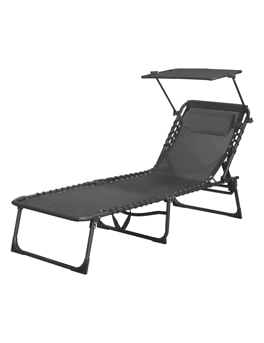 Lehátko so strieškou CONOPEUM, šedo-čierna, polohovateľné, 188x56x28 cm