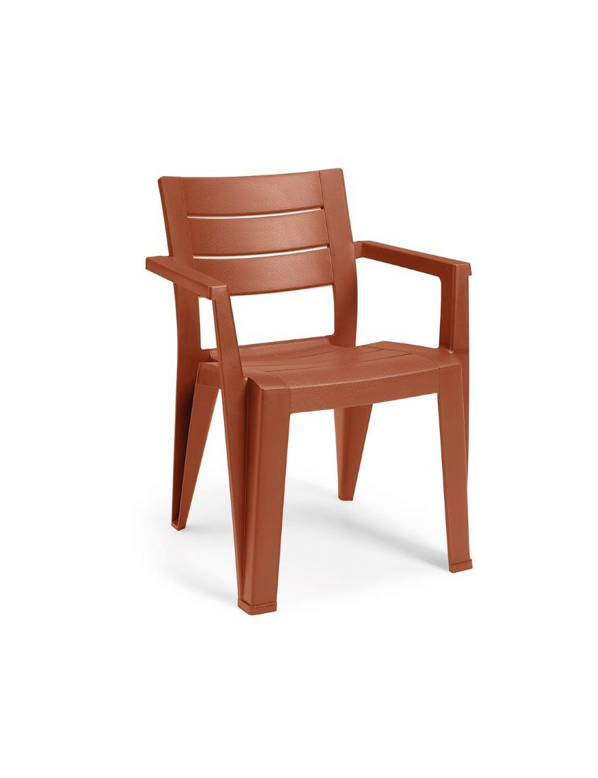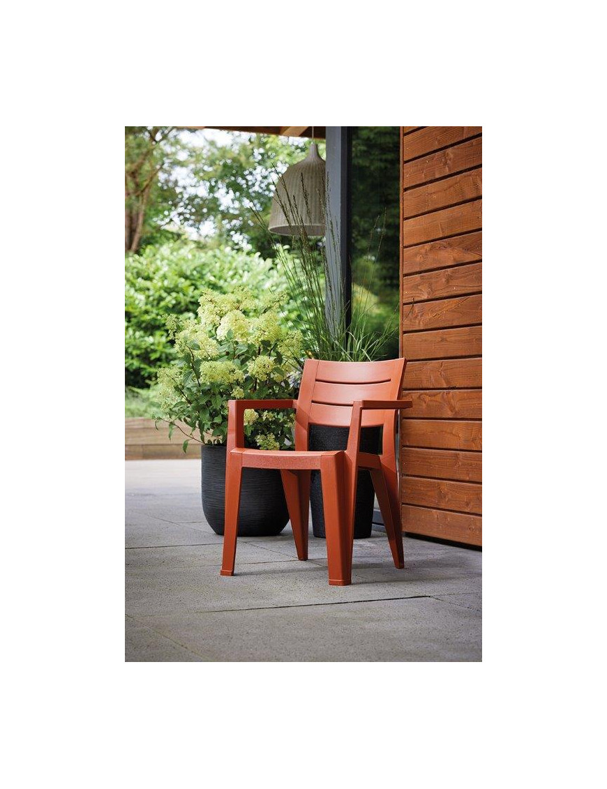 Očakávate početnú návštevu, ale nemáte ju kam posadiť? Potrebujete vonkajšie stoličky pre vašu reštauráciu, kaviareň či bistro? Potom vám skvele poslúži záhradná stolička Keter Julie s moderným dizajnom, ktorý sa hodí k rôznym druhom stolov. Na stoličke oceníte najmä jej stohovateľnosť. Vďaka tomu ušetríte priestor pri skladovaní viacerých kresiel naraz. Zároveň vám táto stolička s operadlom a podrúčkami poskytne komfort pri vonkajšom posedení.
