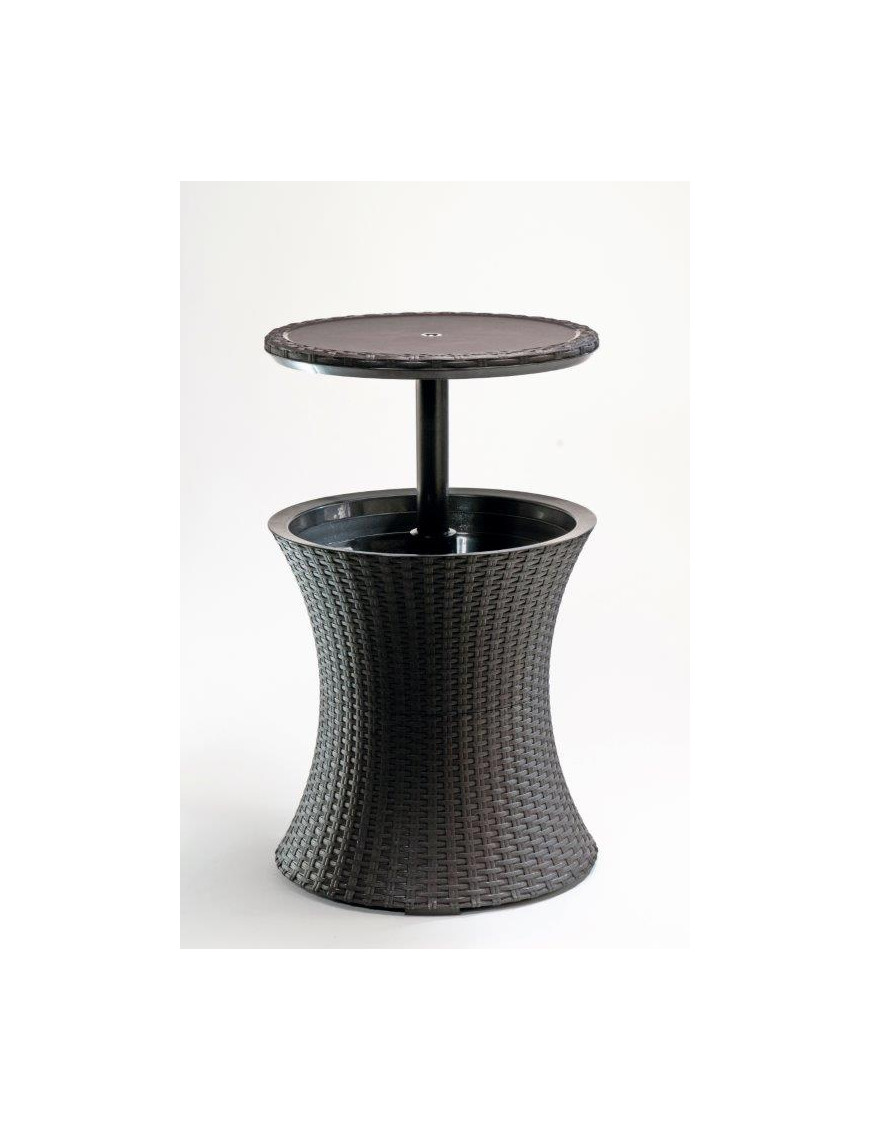 Rozkladací stolček s úložným priestorom. Po rozložení možnosť využiť ako piknik bar s priestorom na nápoje chladené v ľade. Dvojité steny pre lepšiu izoláciu. Ratanové prevedenie.