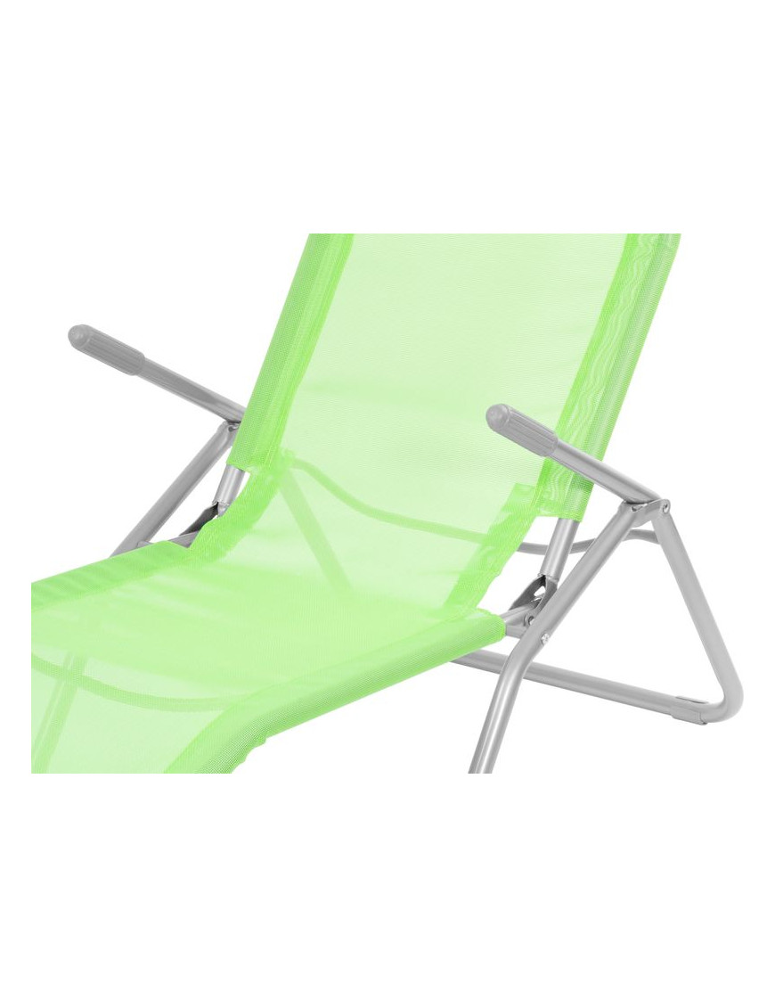 Zelené záhradné lehátko je určené na vonkajšie sedenie alebo ležanie. Konštrukcia je vyrobená z kovu, časť na ležanie je pokrytá pevnou sieťovinou. Lehátko je možné nastaviť do dvoch polôh, pre sedenie alebo ležanie. Lehátko je možné zložiť, čím nezaberá veľa priestoru a je praktické na prenos a uskladnenie. Lehátko nie je určené na komerčné účely. Rozmery rozloženého lehátka sú 140 x 60 x 96 cm.