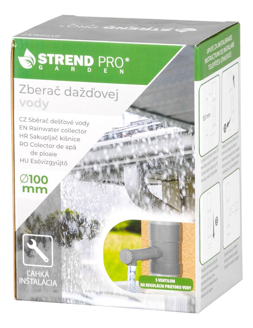 Zberač Strend Pro umožňuje zber dažďovej vody do vonkajšej nádrže/barelu. Pevný a odolný materiál zaisťuje dlhé roky používania. Zberač je možné použiť pre PVC a kovové zvody s priemerom 100 mm. Obsahuje ventil s nastavením prietoku vody.